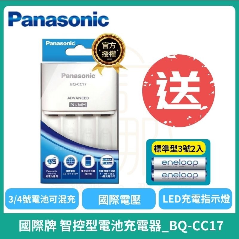 📢 Panasonic 國際牌BQ-CC17智控型電池充電器 送eneloop 標準型3號2入電池