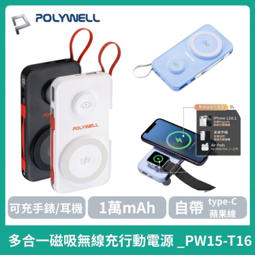 📢POLYWELL 多合一磁吸無線充行動電源PW15-T16