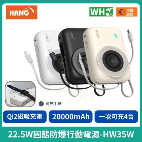 - 品名:HANG 無線磁吸行動電源防爆固態電池 HW35W