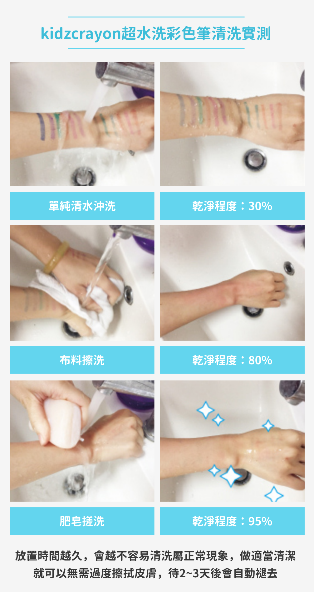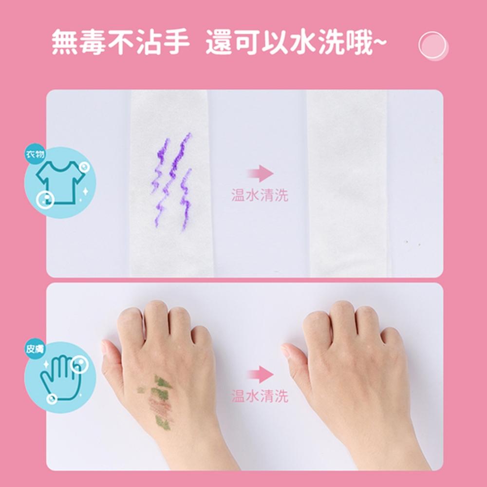 可水洗效果受個體膚質差異,個別深顏色水洗後仍有輕微痕跡,如出現此情況,使用少量肥皂水清洗即可。殘留物質不會有腐蝕性和不適感哦~