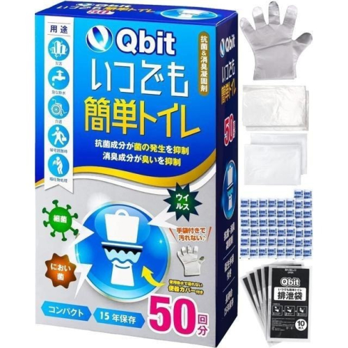 Qbit的便攜式廁所附帶聚乙烯手套50組。使用後將塑料袋從馬桶上取下時,手不會弄髒。
