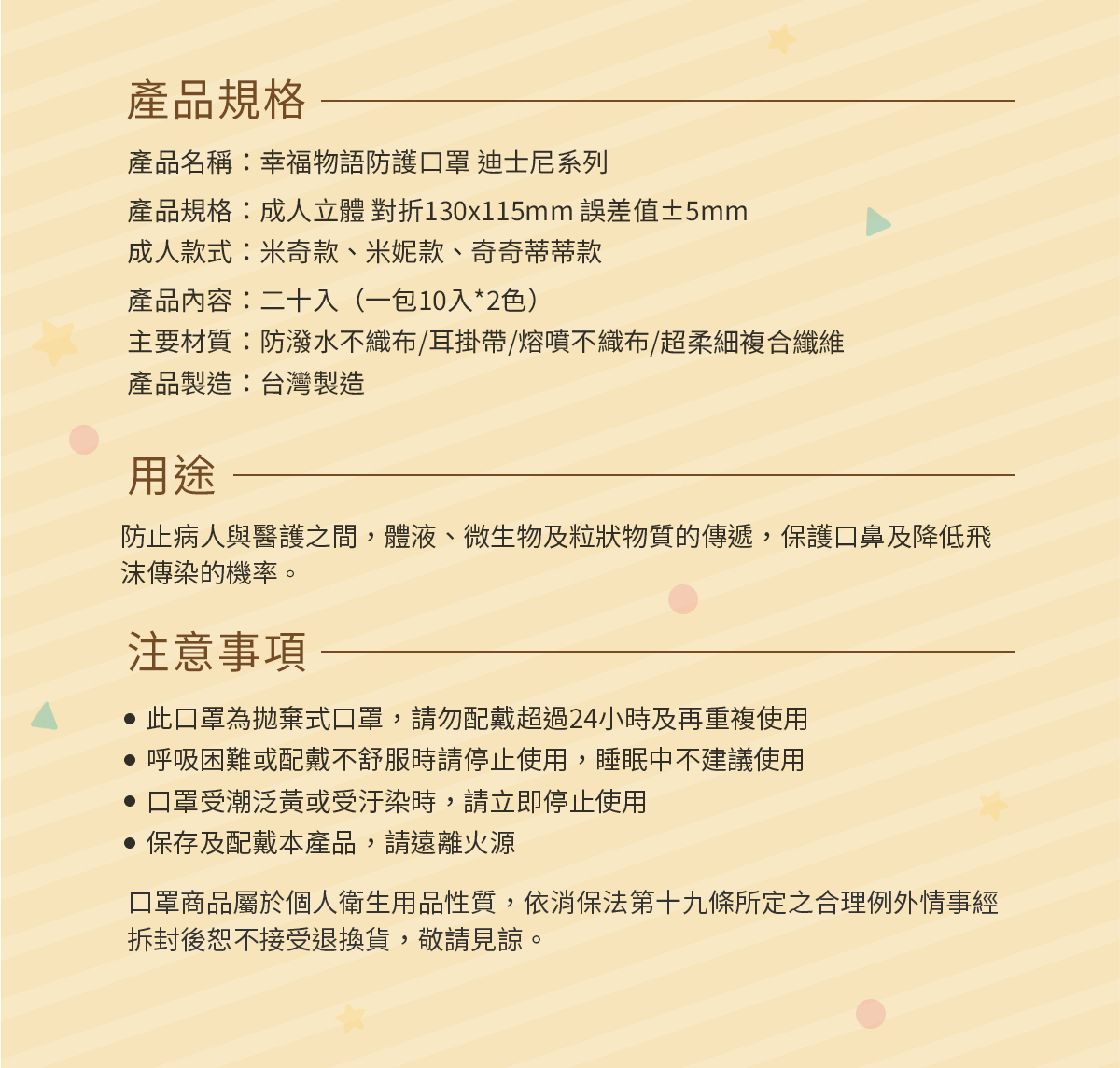 商品名稱:幸福物語 迪士尼 3D立體口罩