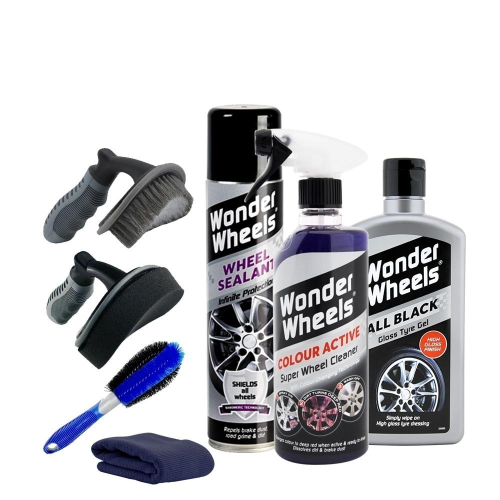 ‧內容物:奇跡鋁圈鍍膜劑300ml、超級鋁圈鐵粉清潔劑600ml、奇跡輪胎光澤劑500ml、鋁圈刷x1、超細纖維擦拭布x1、AutoCare T型輪胎上蠟工具組x1、AutoCare 輪胎刷x1