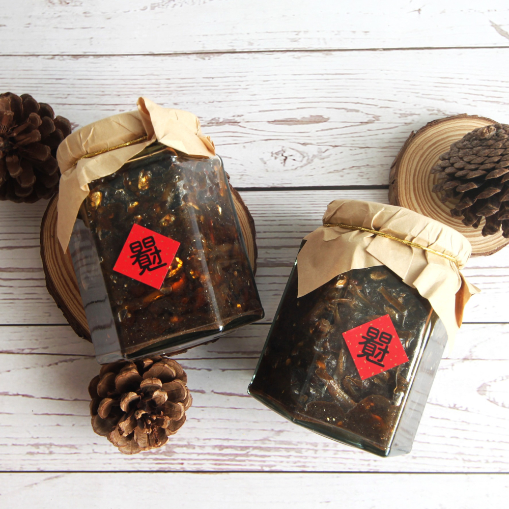辣小魚乾 成分:小魚乾、豆豉、阿婆的辣(朝天椒、黃豆糙米米酒、鹽、糖)、醬油、酒、糖、胡椒 重量:280±10% 保存方式:冷凍1年 保存期限:1年 注意事項:本產品含有海鮮製品,對其過敏者請斟酌食用!
