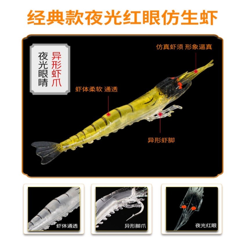 黑頭白身 紅頭黃身 黑頭黃身 蝦眼睛都是橘色夜光模擬眼
