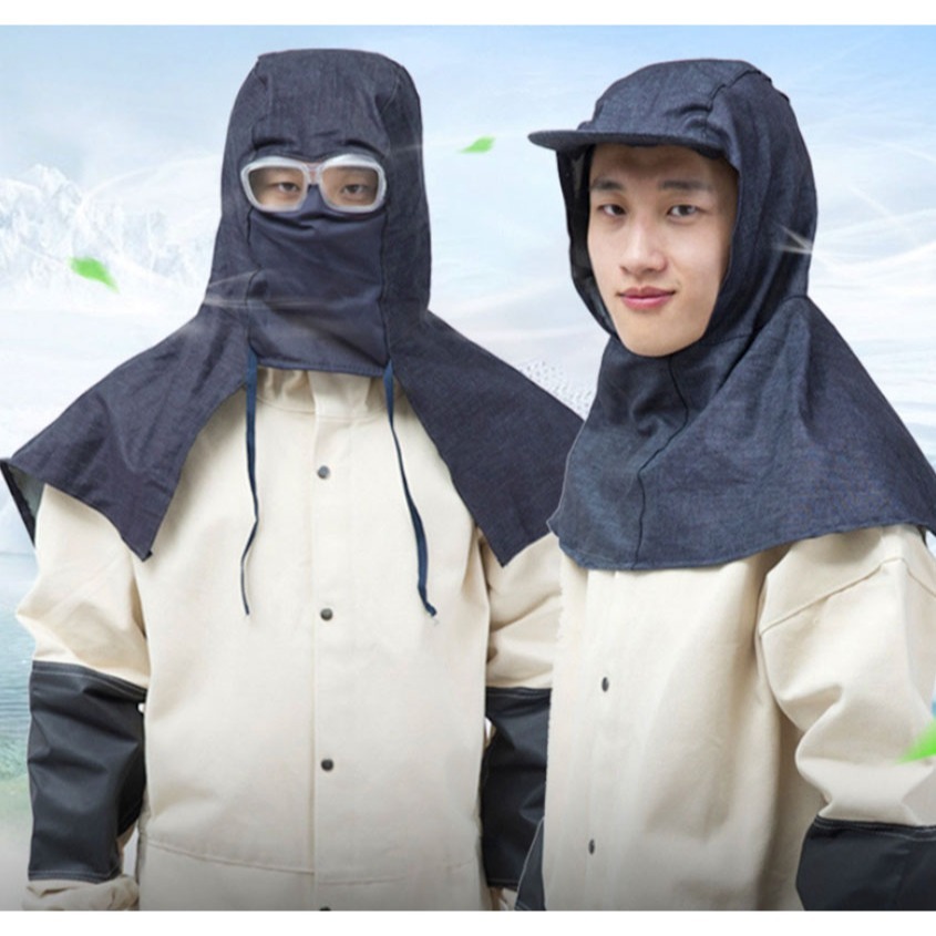 ~子甄彣璟~促銷品-牛仔披肩帽 套頭 防霧 防塵 搬運 打磨 防火花 遮陽 工作帽 披風帽子 帽檐款 防風鏡款