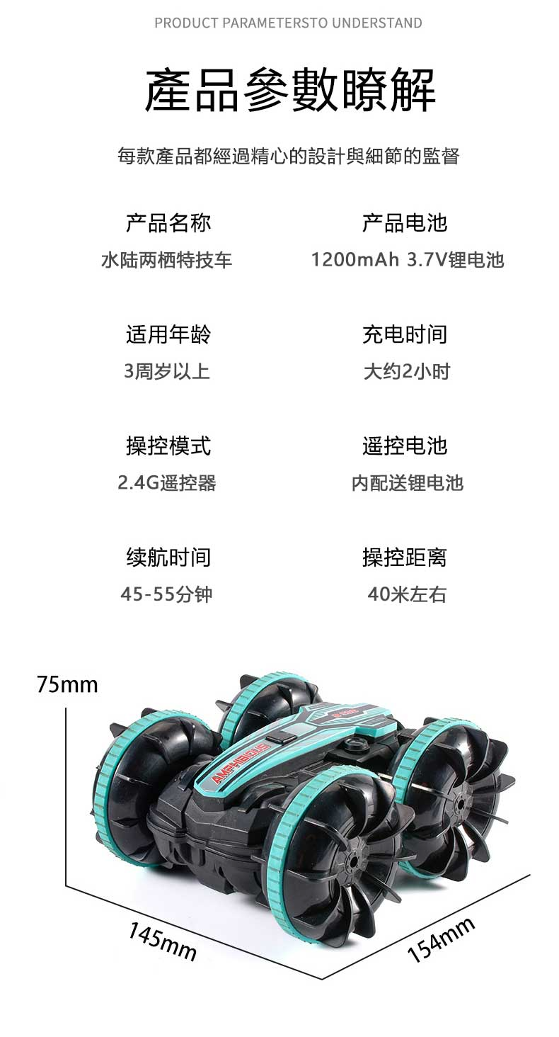顏色:藍色(單手柄遙控)水陸車,紅色(單手柄遙控)水陸車