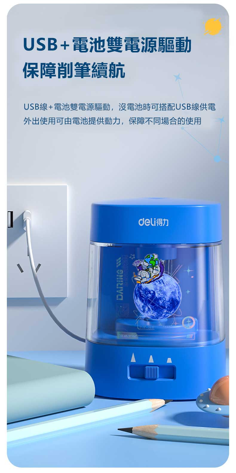 【覓寶】現發 得力USB電動卷筆刀 得力削筆刀轉筆刀小學生省力自動鉛筆削筆器雙電源