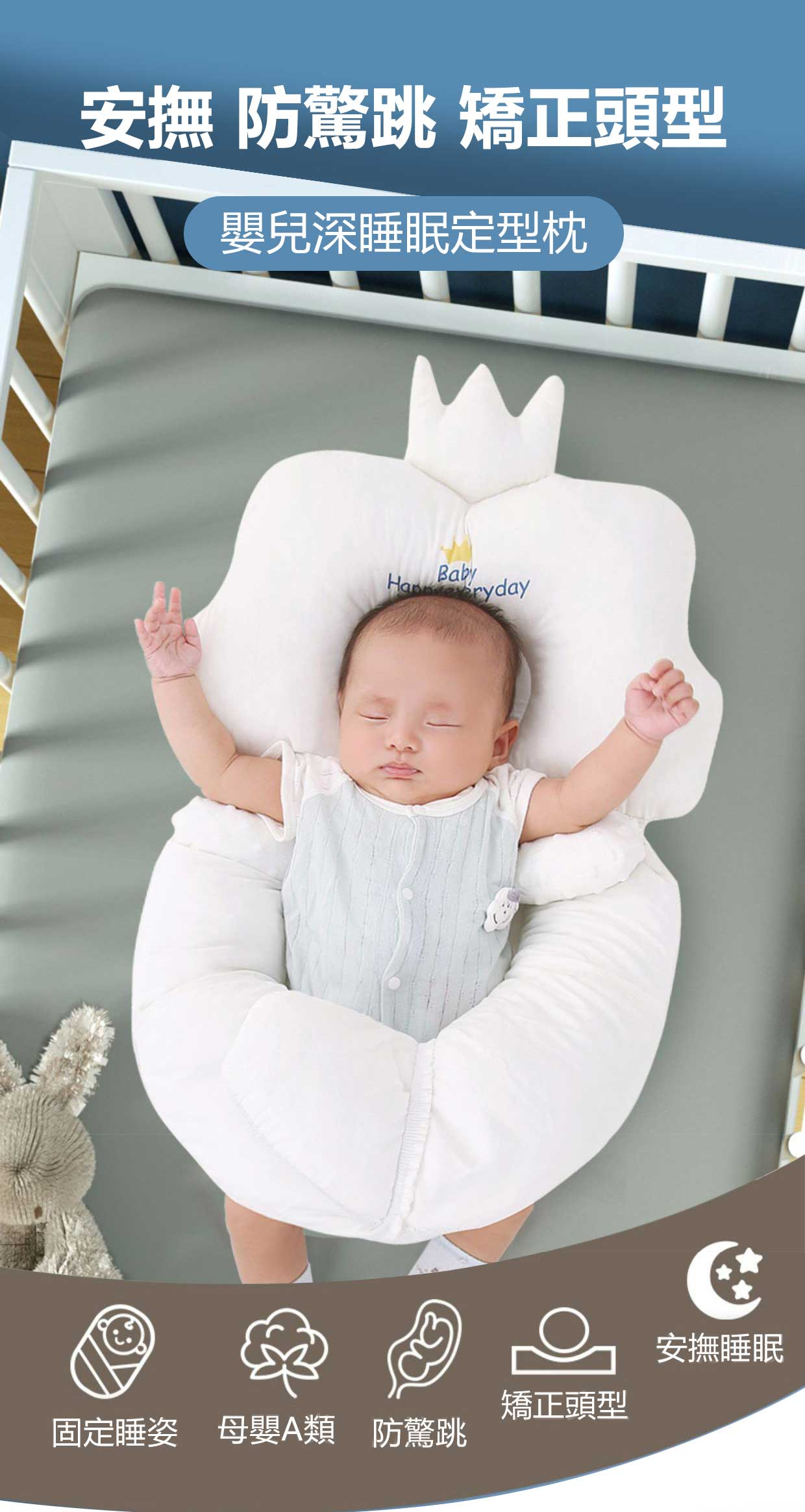 • 安撫皇冠定型枕+防驚跳設計 安撫皇冠定型枕+防驚跳設計