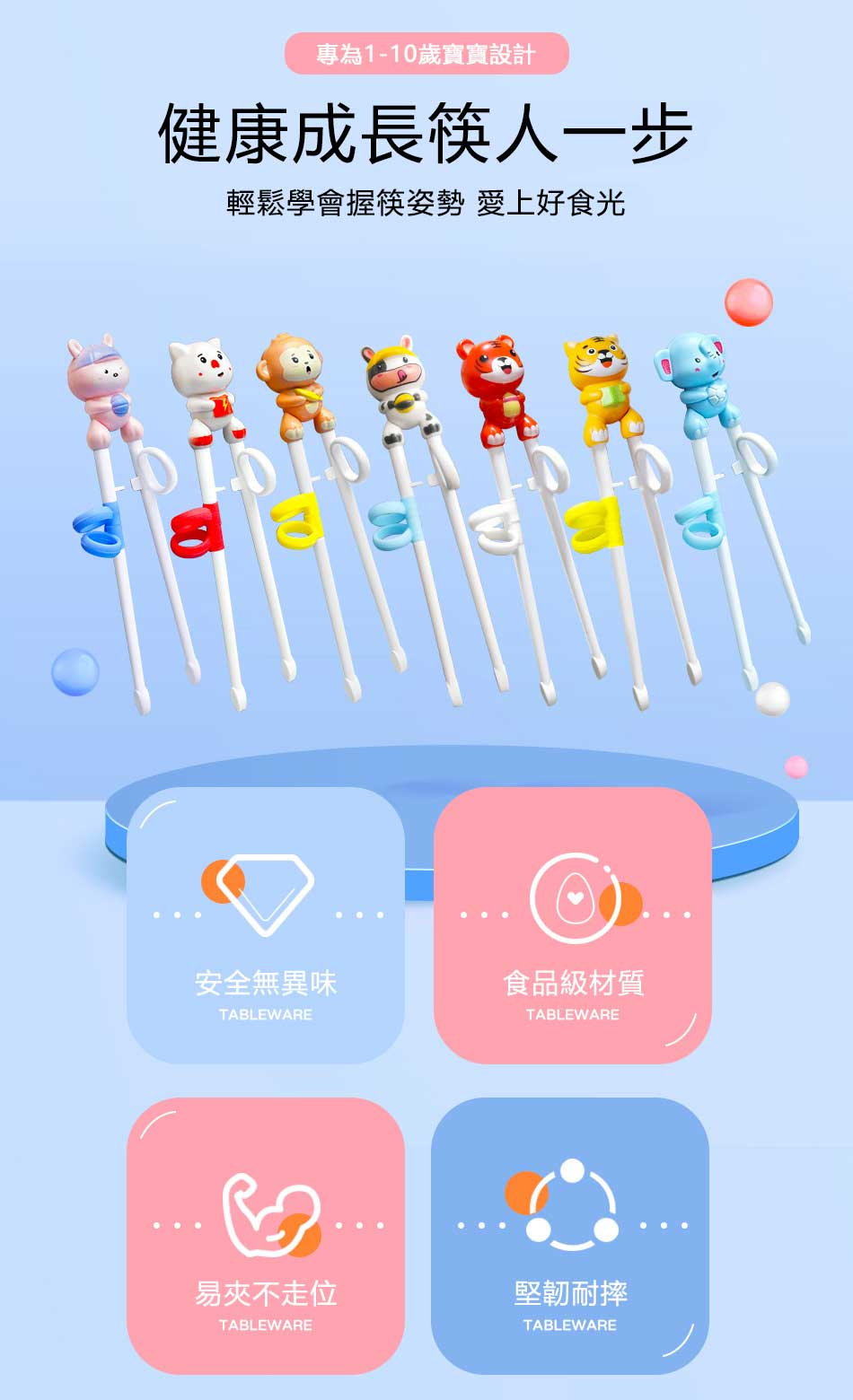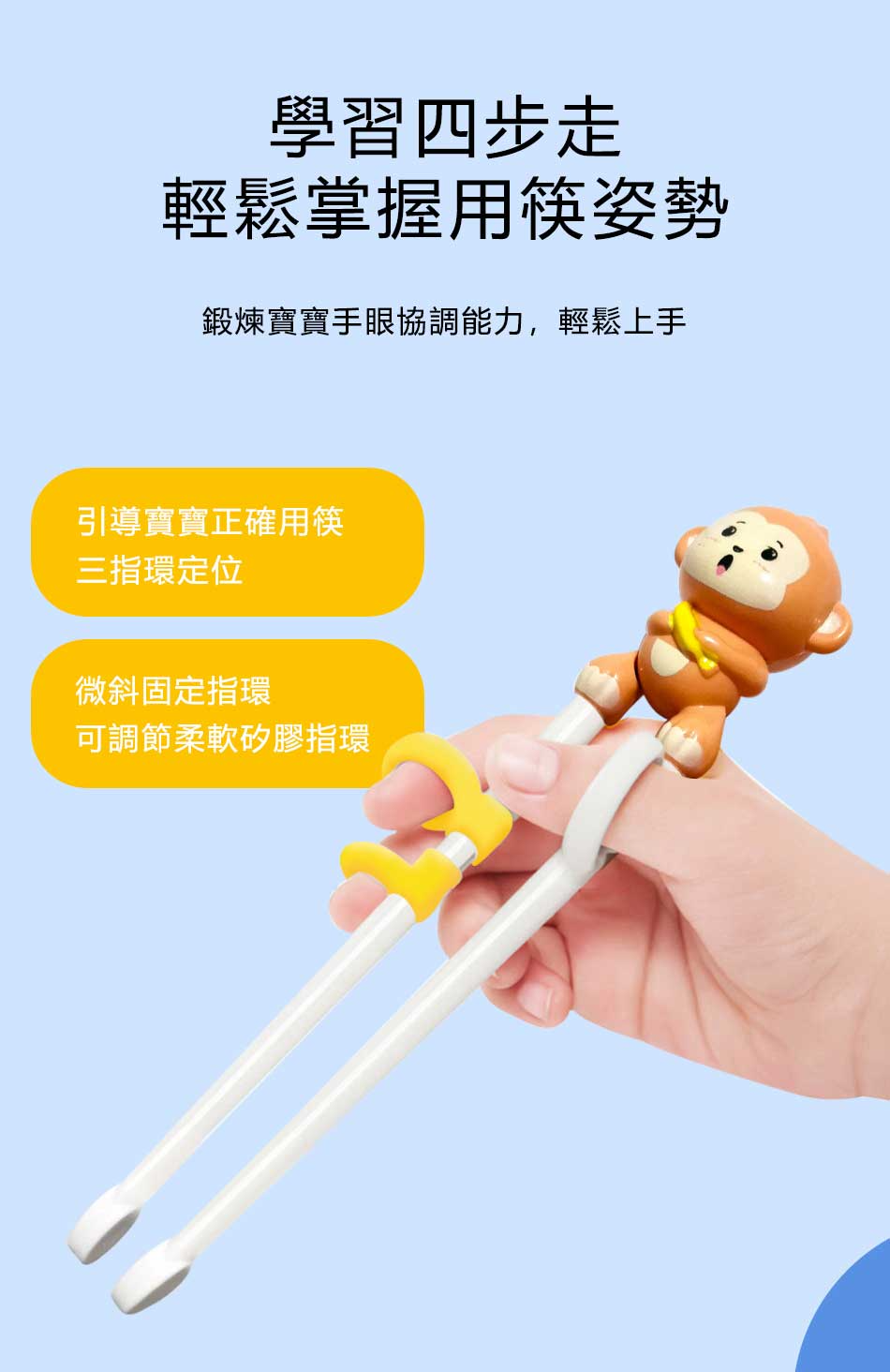 功能:快速學習用筷,矯正用筷姿勢,輔助用餐