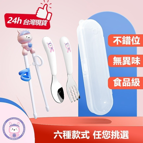 【覓寶】現發 兒童筷子 學習筷 訓練筷 餐具套裝 304不銹鋼 勺叉 寶寶卡通矯正筷 母嬰