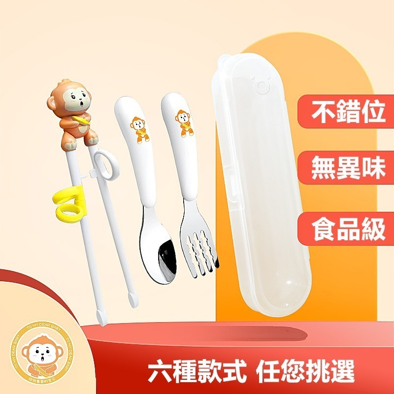 • 猴子 學習筷+304勺叉盒 猴子 學習筷+304勺叉盒