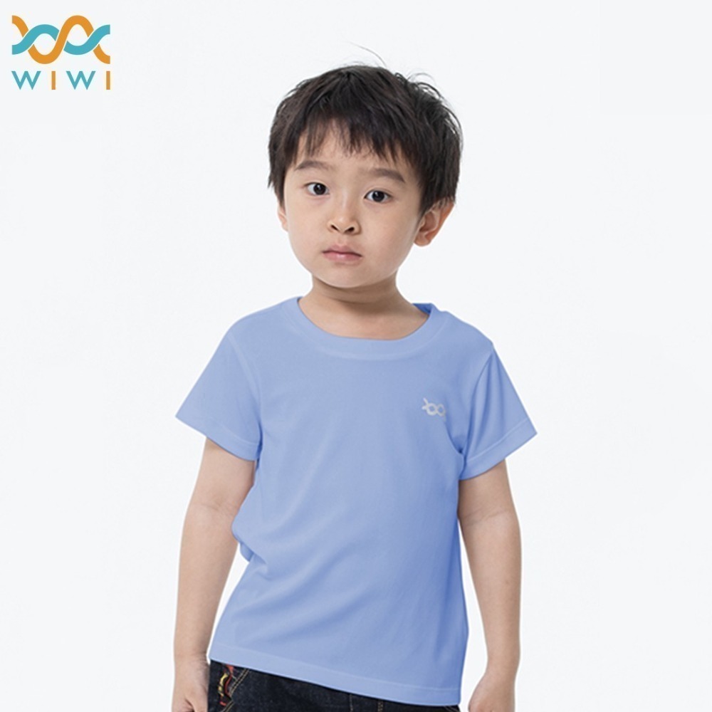 【WIWI】素面防曬排汗短版涼感衣(水漾藍 童70-150)