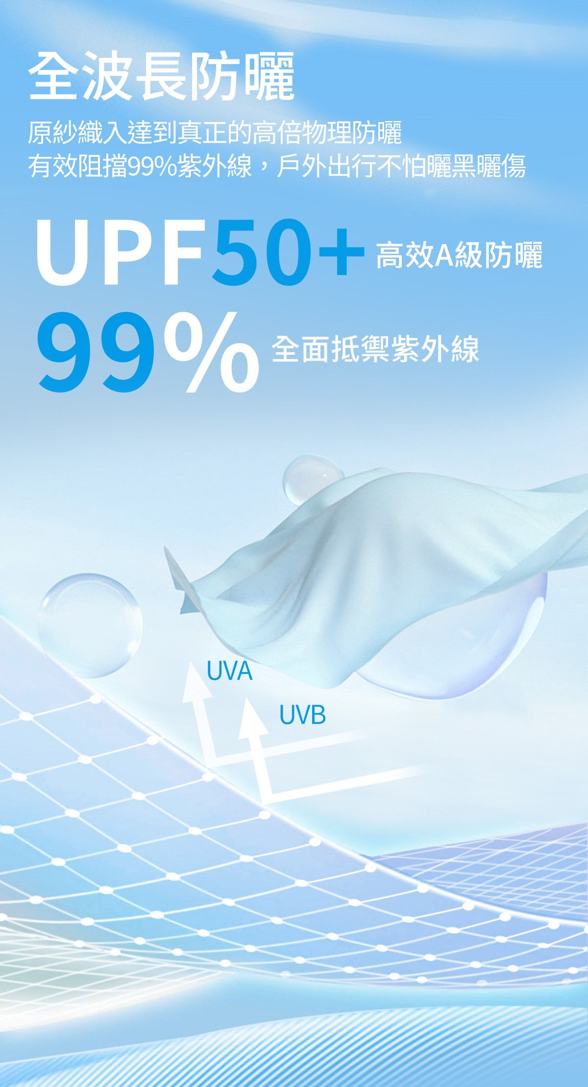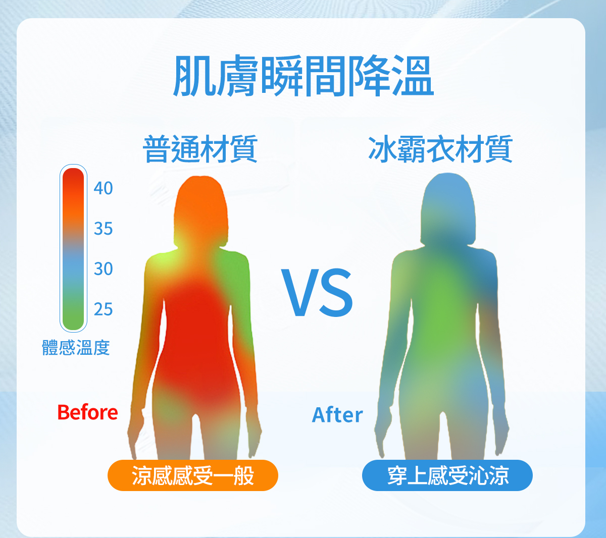 • 尼龍布料加入涼感粒子,穿上1秒即降溫