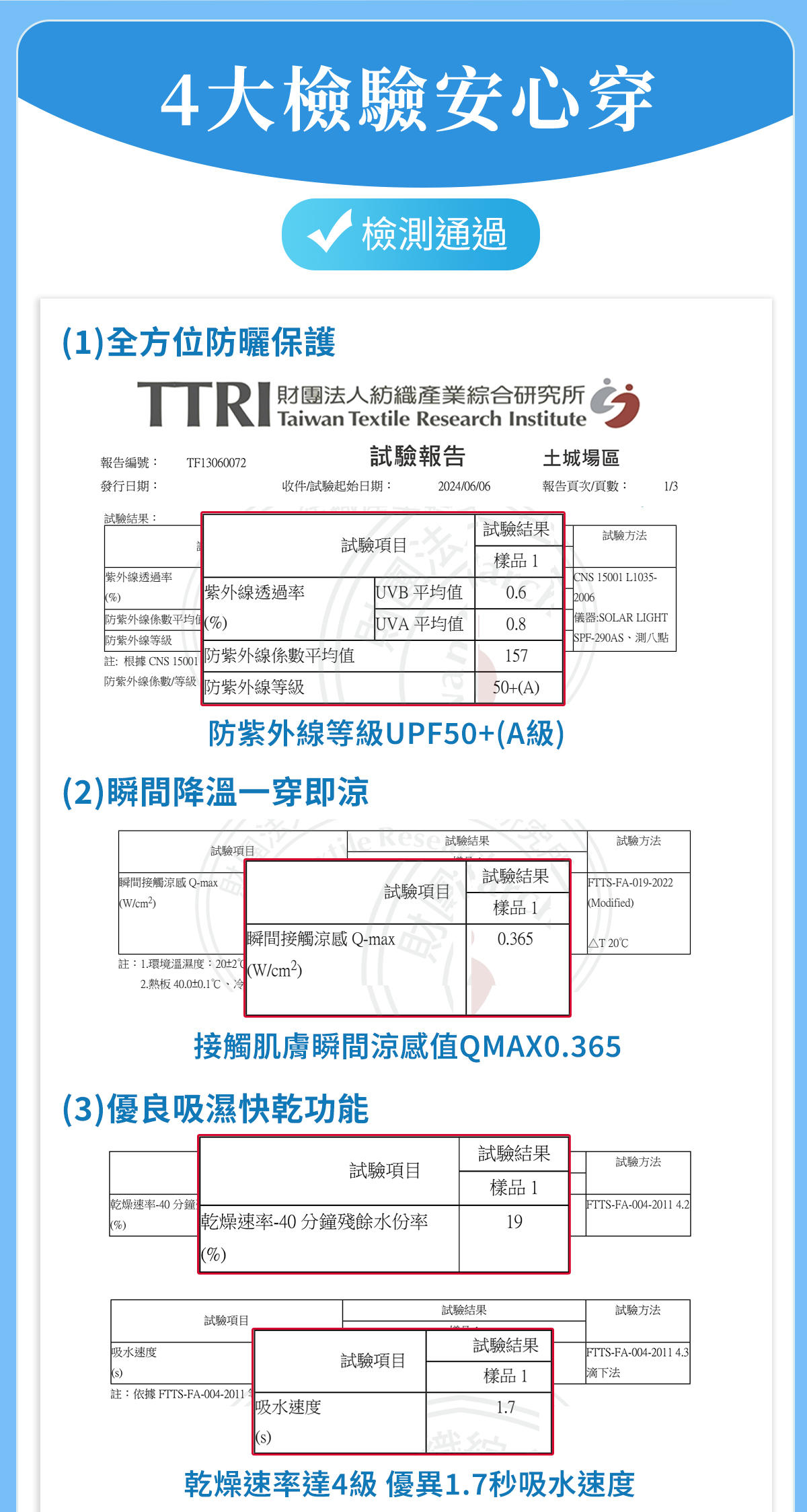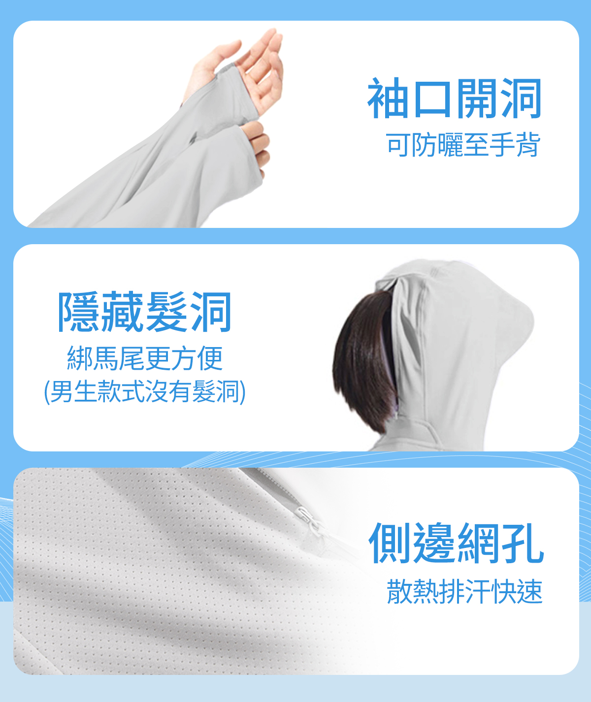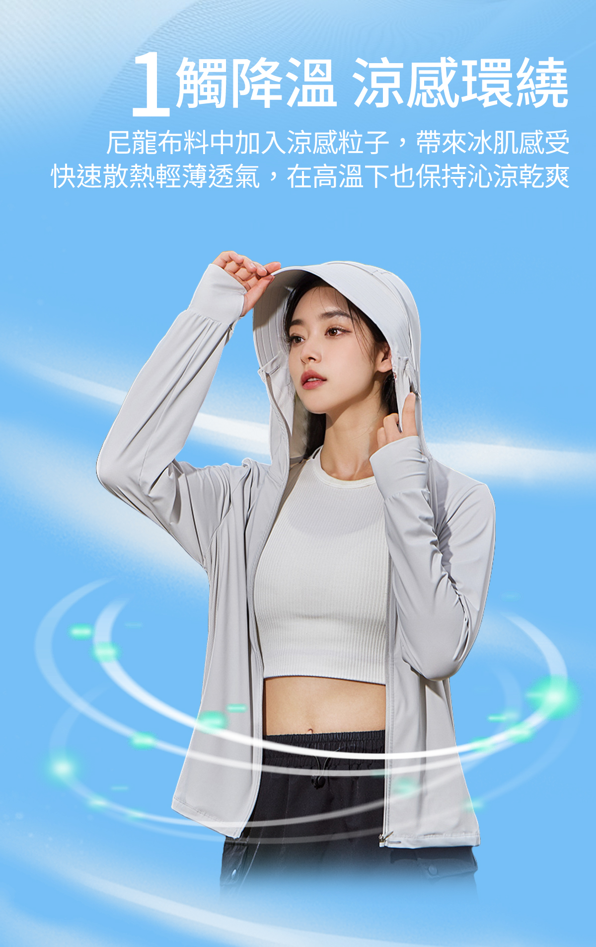 • 尼龍布料加入涼感粒子,穿上1秒即降溫