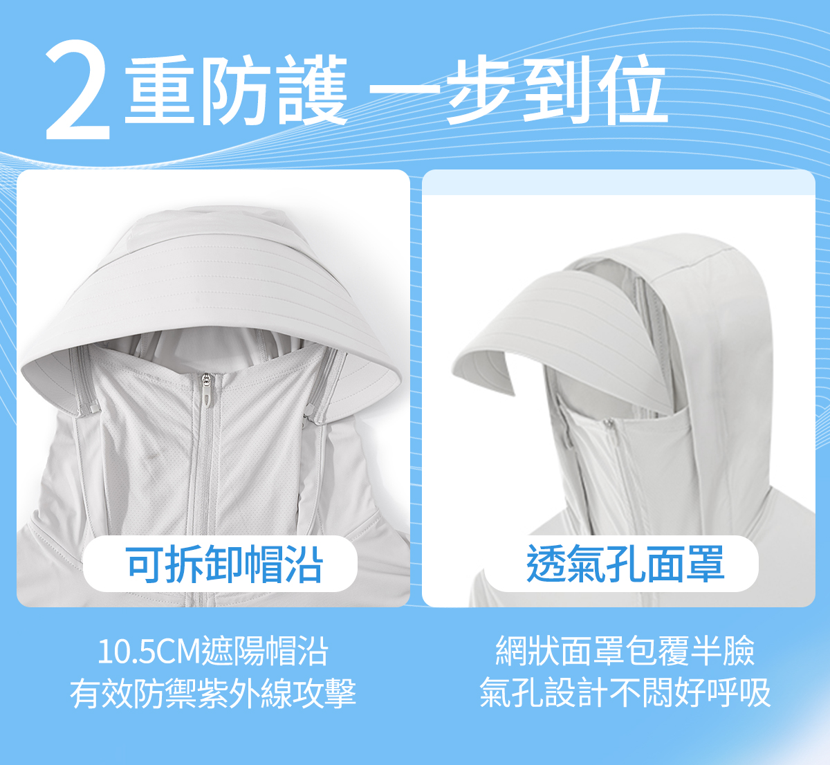 • 可拆帽沿+透氣面罩,2重防護一步到位