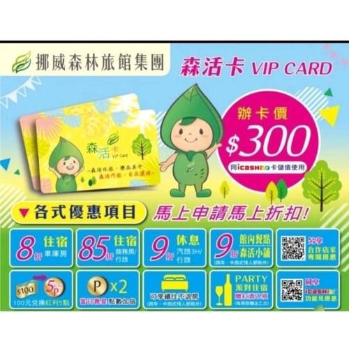 挪威森林旅館集團.VIP森活卡特惠168元(本卡為icash2.0卡)