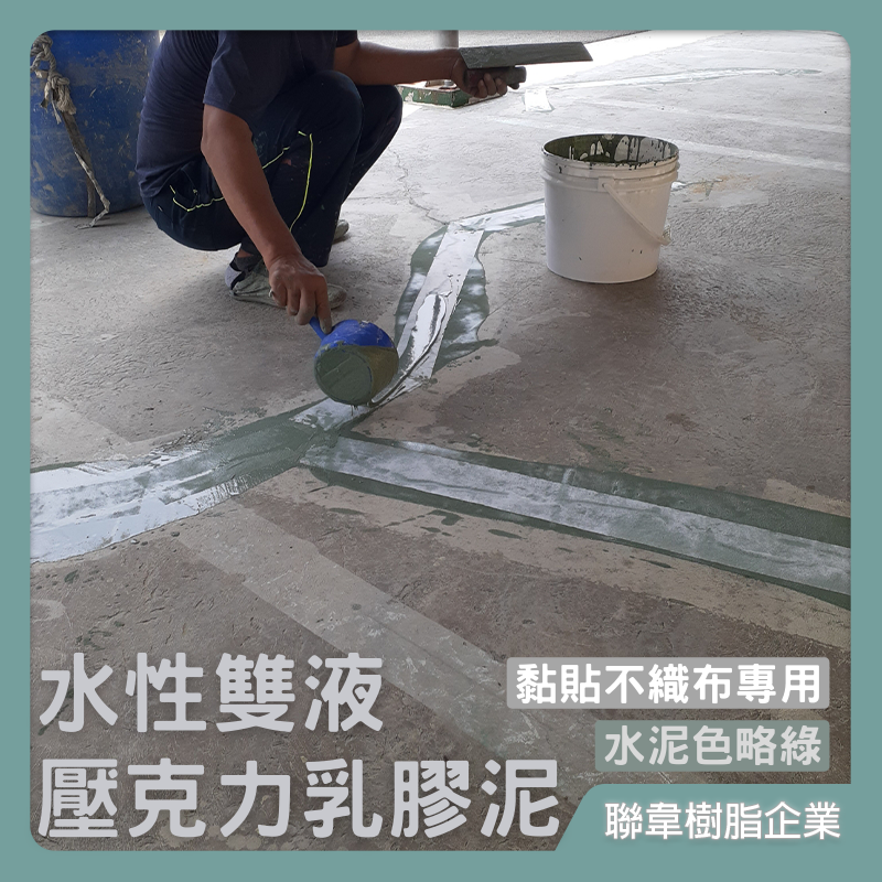 1、係由共聚壓克力樹脂與特殊骨材組合的高接著力的複合式防水材。