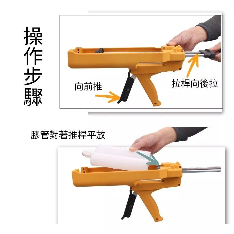 產品已經按照 1:1 比例調配好,直接裝入膠管中,使用時只需搭配專用膠槍即可施工。