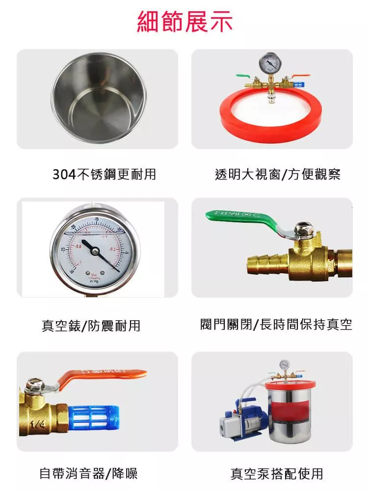 包裝:真空消泡機組(1L VACUUM PUMP + 3加侖 VACUUM CHAMBER)