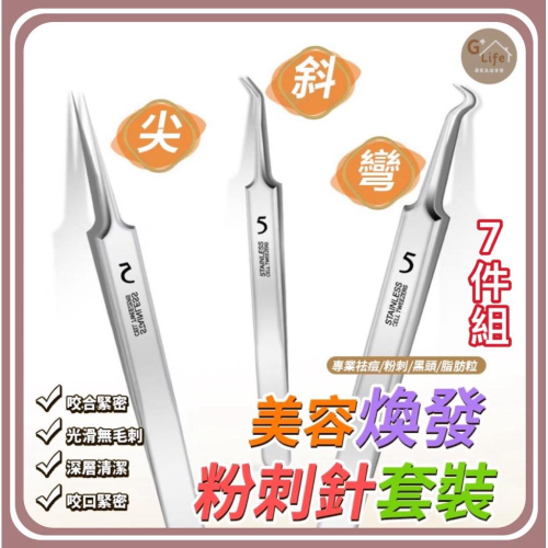 雙頭粉刺夾7件組 不鏽鋼粉刺夾 多功能粉刺夾 粉刺夾 彎型粉刺夾 直嘴夾 斜嘴夾 鑷子 小夾子 擠粉刺【G+ Life】