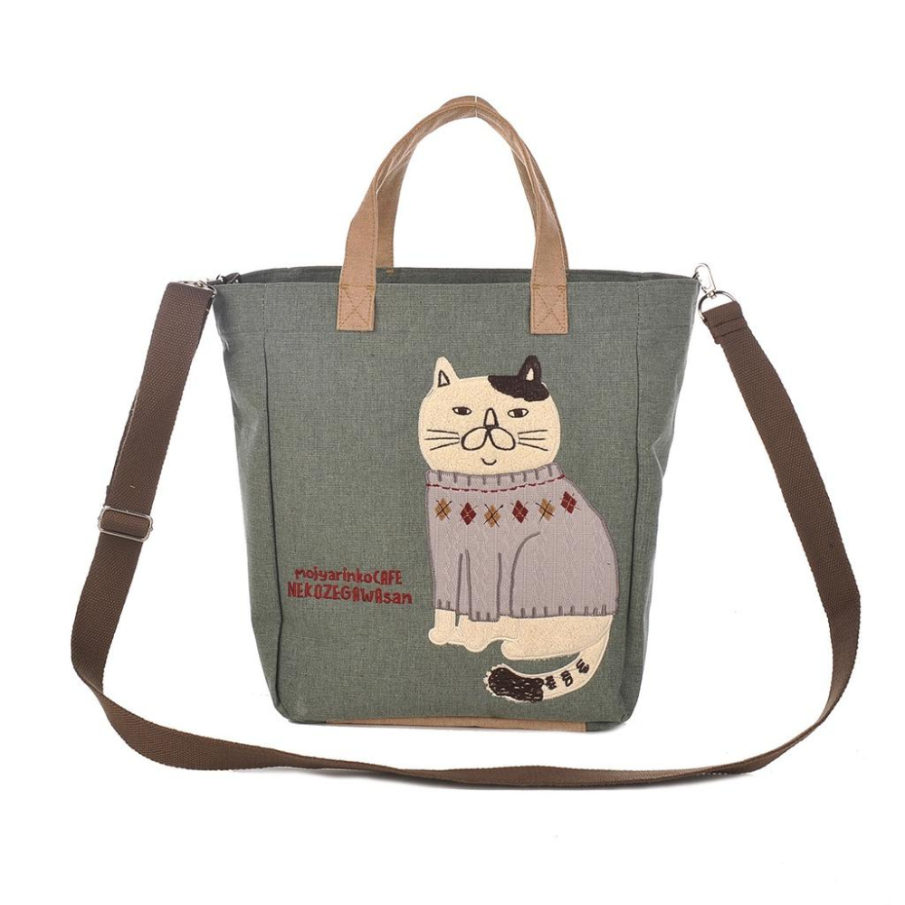 「 Kusuguru shippo 貓咪 ZEGAWA桑 兩用 托特包 側揹 側背 手提 綠 」★ Zammu日本雜貨