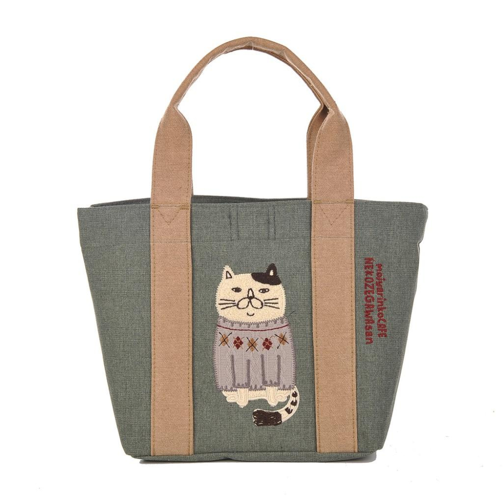 「 貓咪 ZEGAWA桑 Kusuguru shippo 手提袋 托特袋 便當袋 綠 」★Zammu日本雜貨