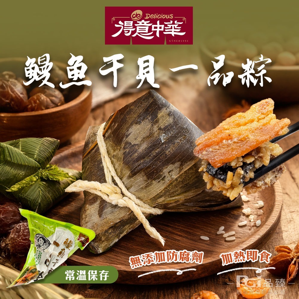 1.商品品名:【得意中華】鰻魚干貝一品粽