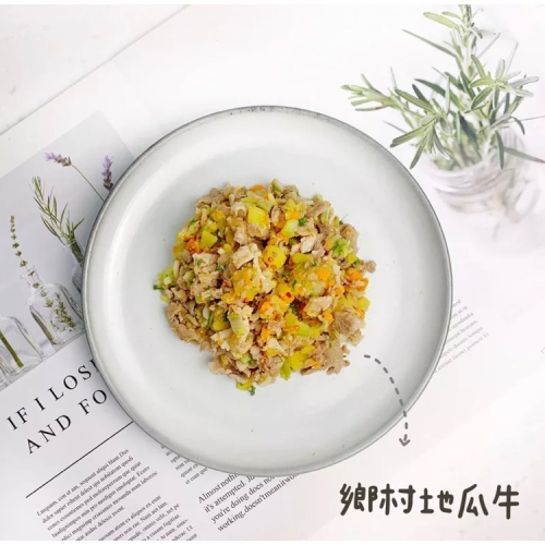 成份:低脂原肉牛肉片、地瓜、紅蘿蔔、紅藜、季節時蔬