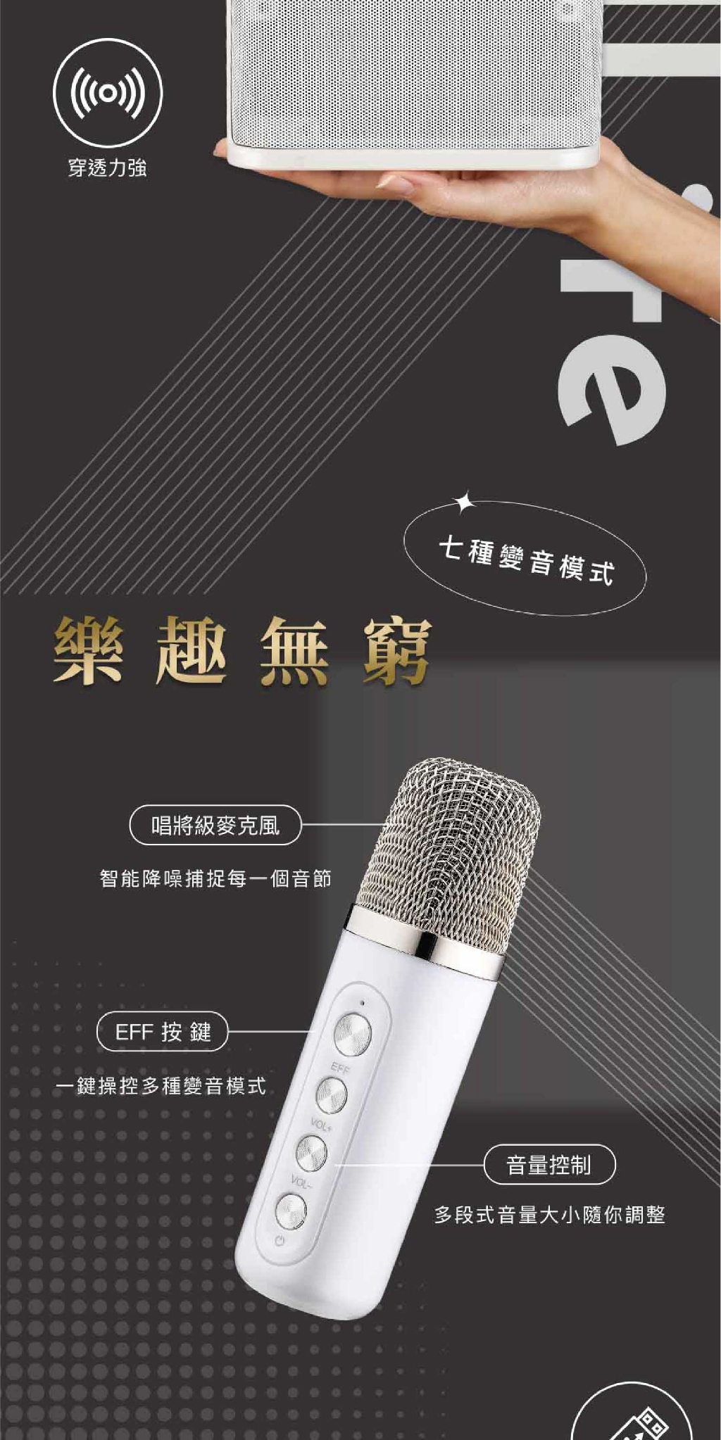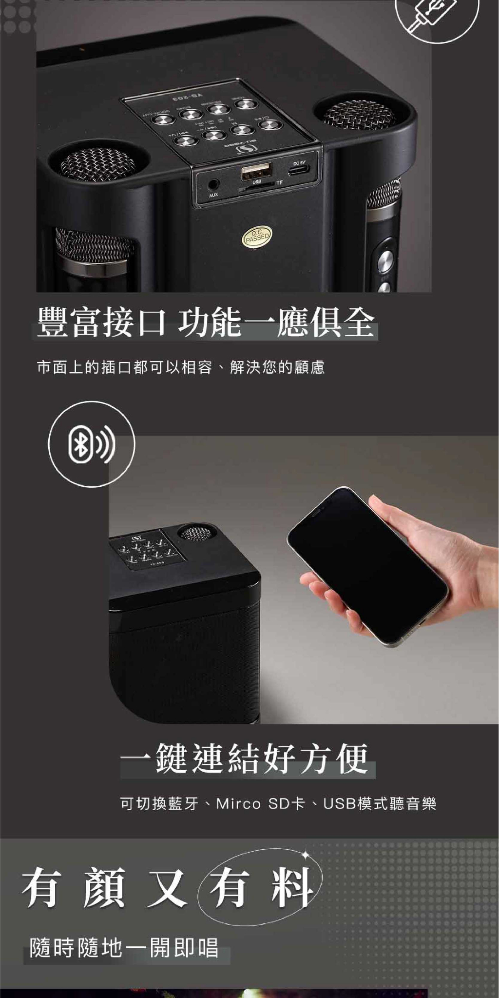 *喇叭主機、麥克風充電孔均為最新Type-C設計,充電更方便