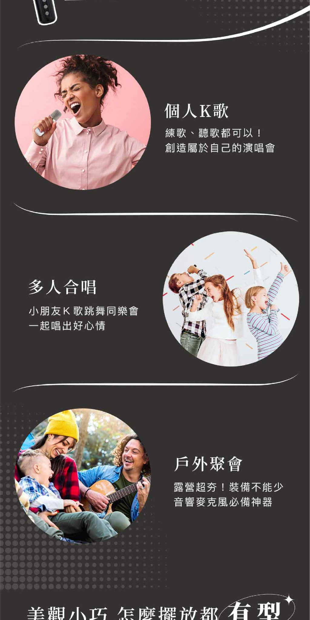 一隻麥克等於一個家庭娛樂場,無線連接手機或智慧電視,多庭秒變KTV,家人孩子的摯愛。