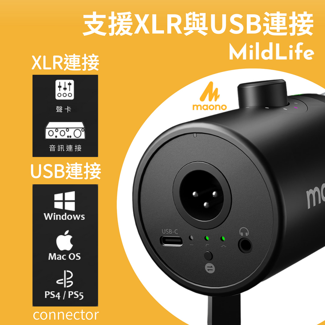 4.卡儂XLR和USB-C雙介面,可直接連接電腦和手機設備,也可與專業聲卡配合使用