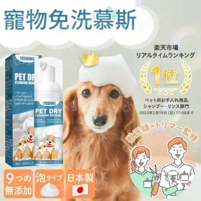 YEGBON寵物免洗清潔慕斯乾洗劑 PET DRY慕斯泡泡 沐浴露 狗狗 貓咪 寵物洗澡專用 除菌除異味 溫和 60ml