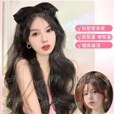 產品:蝴蝶結髪箍假髪 材質:升級混絲 顔色:黑色 黑茶色 摩卡棕 功能:墊高爐頂 秒變長髮