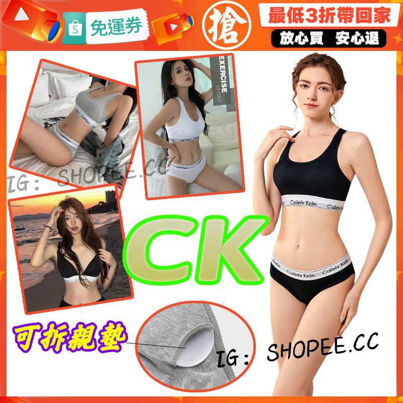 😍2件折60😍 CK 運動內衣褲 有親墊可拆解 細肩帶 女生深v性感內衣套裝 純棉 丁字褲 無痕成套女用內衣 胸罩