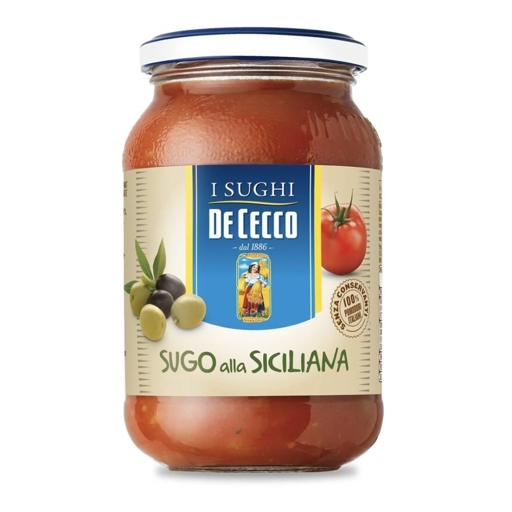 De Cecco西西里義大利麵醬結合綠橄欖與黑橄欖的美味,加上純樸的特級橄欖油與義大利番茄的清新香味的一個完美組合。
