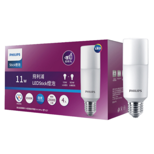 特價 4入 PHILIPS 飛利浦 11W Stick LED 1300流明 LED燈泡 小體積無藍光雪糕燈泡 白光黃光