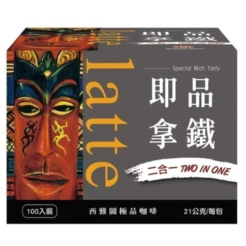 ** 100包 西雅圖 即品拿鐵咖啡禮盒 二合一咖啡包(21g) 無糖咖啡 2合1咖啡