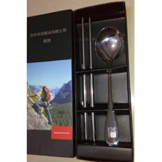全新 karrimor 18/10 316不鏽鋼 湯匙+筷子 兩入組 環保筷 環保餐具 不銹鋼 食品級不鏽鋼環保餐具 盒子印有贈送公司名