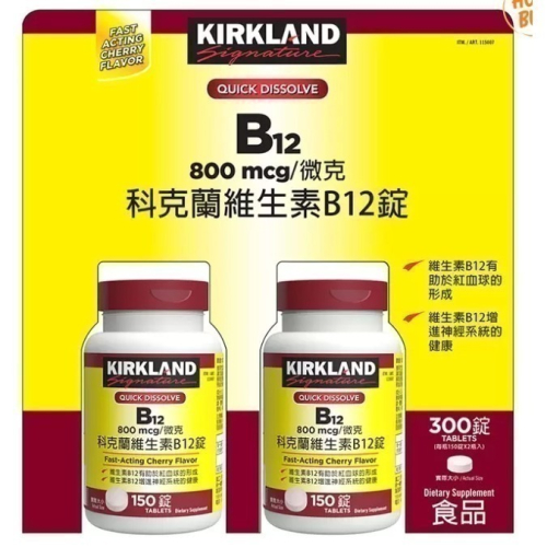 特價 300錠 科克蘭維生素 B12 錠 800微克 (150錠x2瓶) Kirkland 好市多 維他命 維生素B12 效期2027.05(含以後)