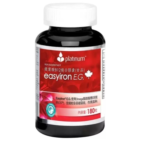 180粒 Platinum 鐵葉酸 B12 複合膠囊 食品 素食 一天一粒 Easyiron E.G. 效期 2026.08(含以後)