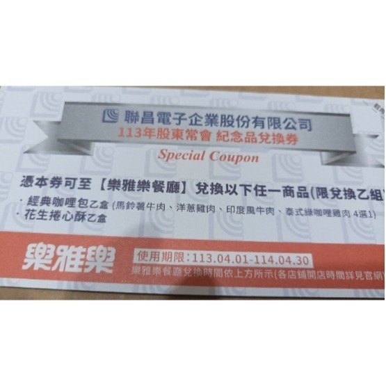 聯昌 樂雅樂餐廳 兌換券 咖哩調理包券 2選1兌換券