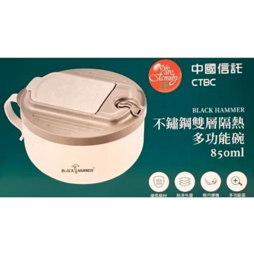 全新 850ml 304不鏽鋼雙層隔熱多功能碗 雙層碗 泡麵碗 大碗 不鏽鋼碗 瀝水口 乾麵碗 雙層大湯碗 中信金 BLACK HAMMER 上蓋:pp 碗身: 內層 304 (18/8) 不鏽鋼 + 外層PP 上蓋有瀝水孔,輕鬆瀝水 也有餐具存放孔