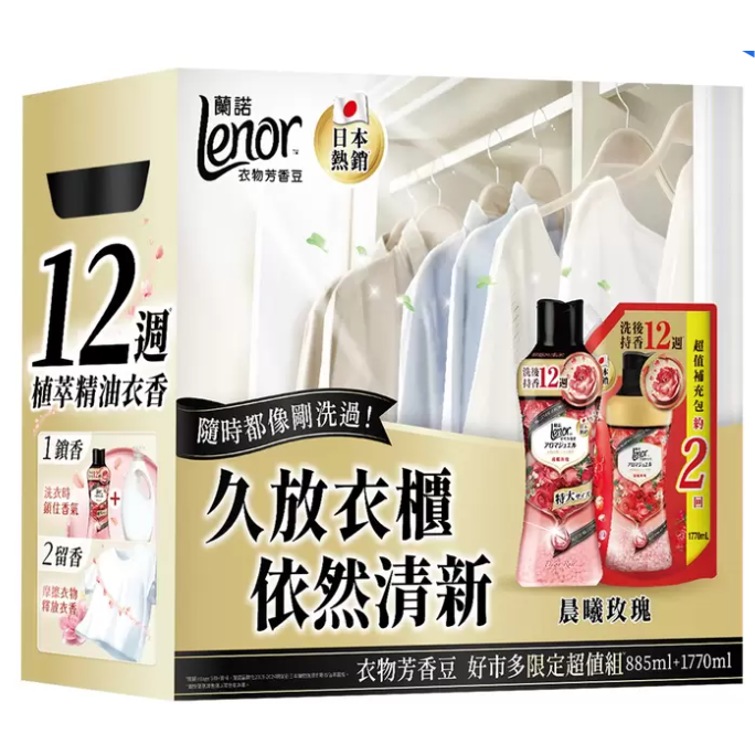 特價 蘭諾 衣物芳香豆 晨曦玫瑰 885毫升 + 1770毫升補充包 熱銷香味晨曦玫瑰超值組 香味長達12週