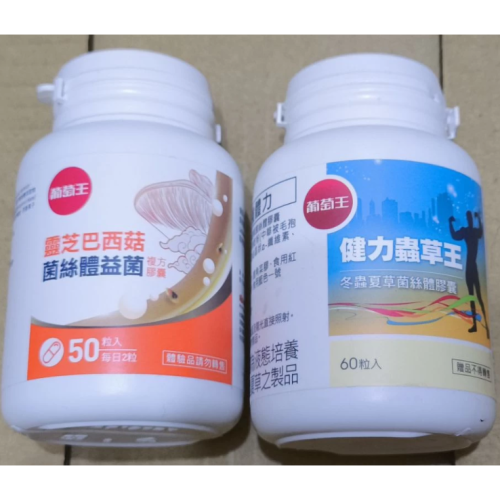 60粒/瓶 葡萄王 健力蟲草王, 50粒/瓶 葡萄王 靈芝巴西菇 菌絲體益菌 複方膠囊
