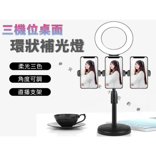 @貨比三家不吃虧@三機位桌面環狀補光燈 環形補光直播燈 LED美顏補光燈 360度旋轉 打光 柔光燈 人像自拍 美光燈