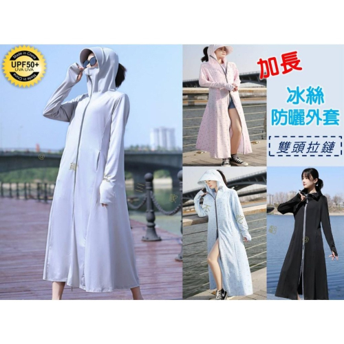 @貨比三家不吃虧@加長冰絲外套 長版防曬外套 防曬衣 抗UV防曬服 騎車裝備 時尚 戶外活動 帶帽長款 加長帽檐 長裙