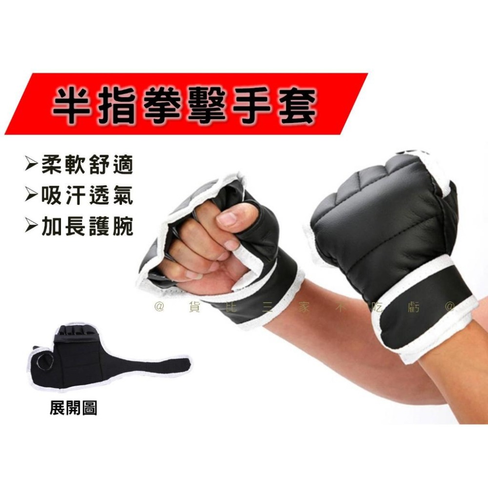 @貨比三家不吃虧@半指拳擊手套 半指式綜合格鬥拳擊手套 PU皮革 健身護腕 透氣 散打訓練 博擊 保護關節 保護手腕