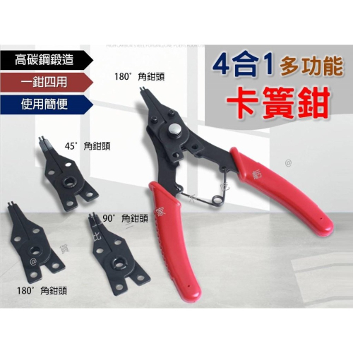 @貨比三家不吃虧@四合一多功能卡簧鉗 擋圈鉗 四用彈簧鉗 C型環鉗 四頭擋圈鉗 穴軸用卡環鉗 可更換式彈簧鉗 可換頭
