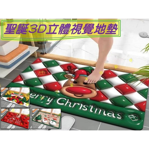 @貨比三家不吃虧@聖誕3D立體視覺地墊 3D地墊 腳踏墊 浴室防滑地墊 卡通 玄關腳踏墊 水晶絨 耶誕節 飾品 厨房地墊 刮泥墊